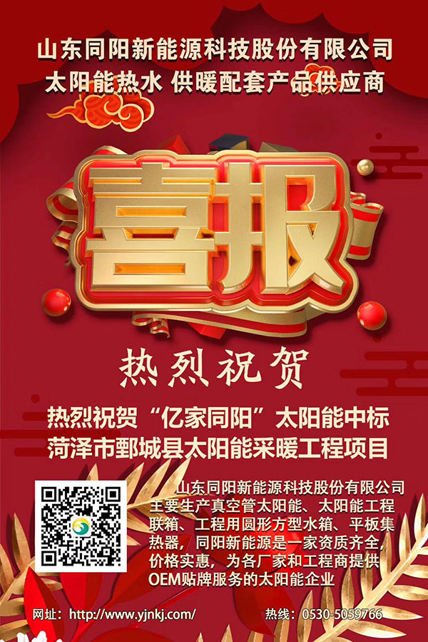 “億家同陽”太陽能中標(biāo)菏澤市鄄城縣太陽能采暖工程項目。