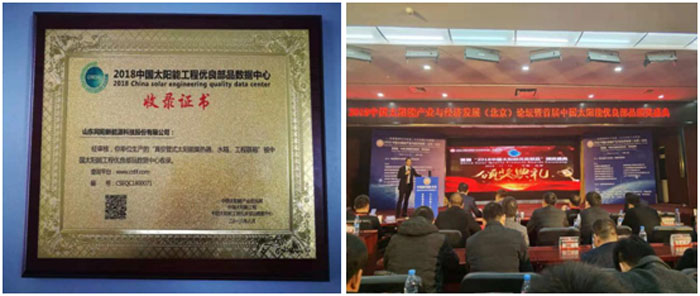 2018年11月13至14日,中國太陽能產(chǎn)業(yè)與經(jīng)濟(jì)發(fā)展(北京)論壇暨首屆“中國太陽能優(yōu)良部品”頒獎盛典在京召開。公司總經(jīng)理陳永峰先生應(yīng)邀出席本次盛典,并代表公司領(lǐng)取“中國太陽能優(yōu)良部品”收錄證書。